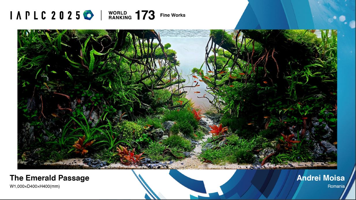La nivel internațional, The Emerald Passage a intrat în Top 11% mondial la IAPLC 2025, obținând Locul 171 din 1553 de lucrări înscrise din întreaga lume – un rezultat care plasează România pe harta marilor competiții de aquascaping.